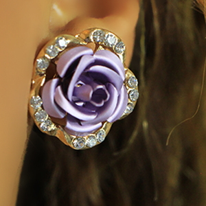 Rhinestone Rose Stud Earrings - Purple
