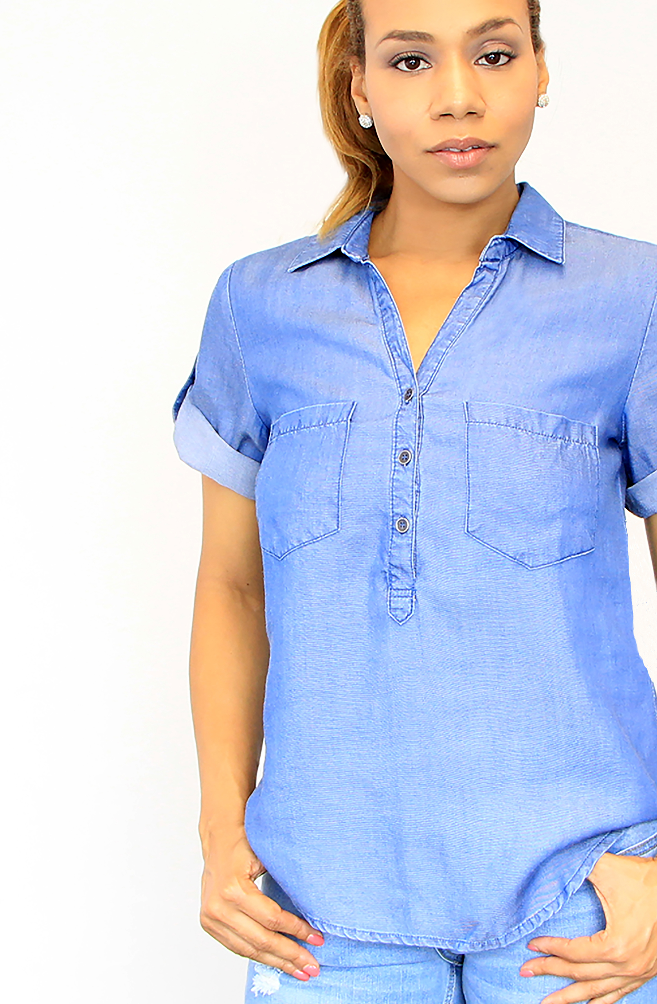 Tencel 3-Buttoned Rolled Sleeves Tunic - Dark