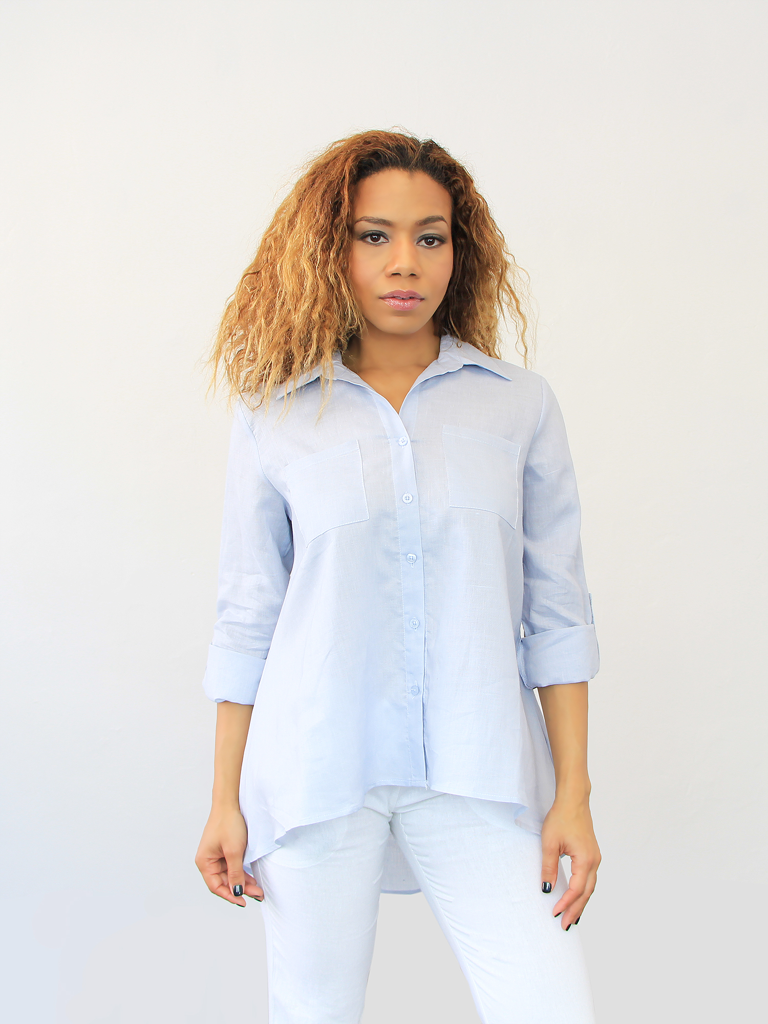 Our linen button up is the perfect top to help you stay stylish and professional in the warmer summer months. The light linen material is breathable and offers a comfort unparalleled by other fabrics. Available in Powder Blue.