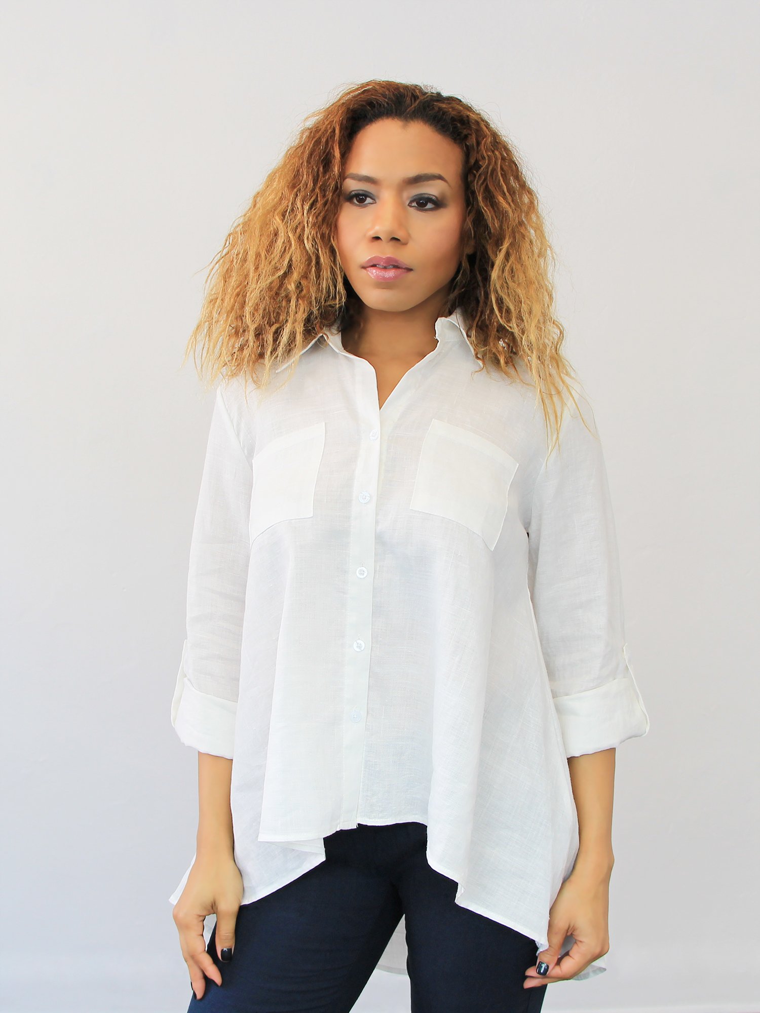 Our linen button up is the perfect top to help you stay stylish and professional in the warmer summer months. The light linen material is breathable and offers a comfort unparalleled by other fabrics. Available in Pure White.